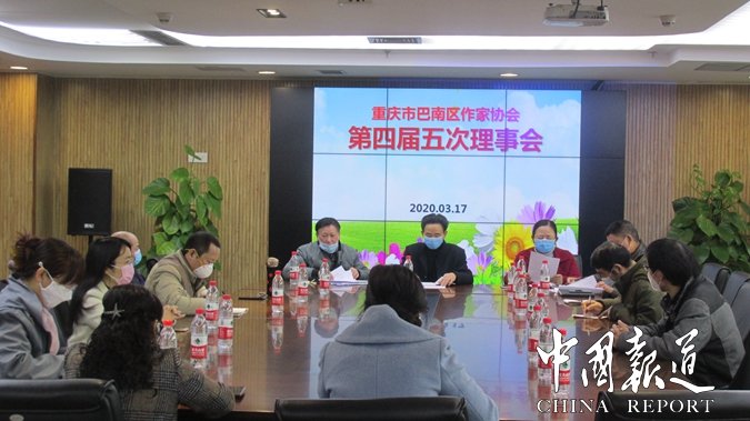 中国报道(通讯员卢光顺)2020年3月17日下午,重庆市巴南区作家协会在区文化馆717室召开了第四届五次理事会。特邀巴南区文联主席戚万凯、副主席朱丽红参会,巴南区作家协会主席刘凡君、副主席廖弟华、刘学兵、卢光顺,理事祝绘涛、周志明、李梅、张伦、袁红艳、盛友红、杨敏,因新冠疫情时期,部分理事确因特殊原因未到会。