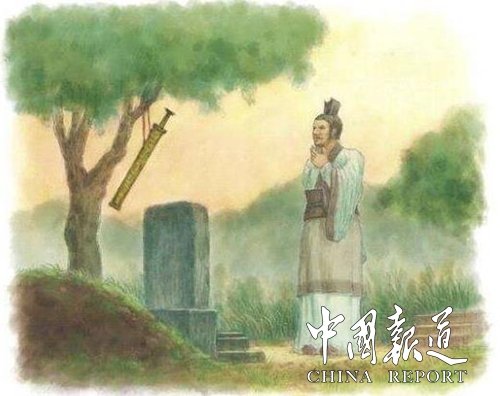 怎料世事无常,等到季札出使返回,又经过徐国时,徐君却已经过世了。他站在徐君墓前,内心有说不出的悲戚与感伤。他望着苍凉的天空,把那把长长的剑,挂在了树上,心中默默地祷念着:您虽然已经走了,我内心那曾有的许诺却常在。希望您的在天之灵,在向着这棵树遥遥而望之时,还会记得我佩着这把长长的剑向你道别的那个时候。他默默地对着墓碑躬身而拜,然后返身离去。