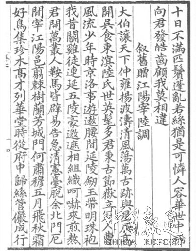 中国报道讯【编者按】历代文人咏吴国、泰伯及其后人诗文选,唐诗《叙旧赠江阳宰陆调》。