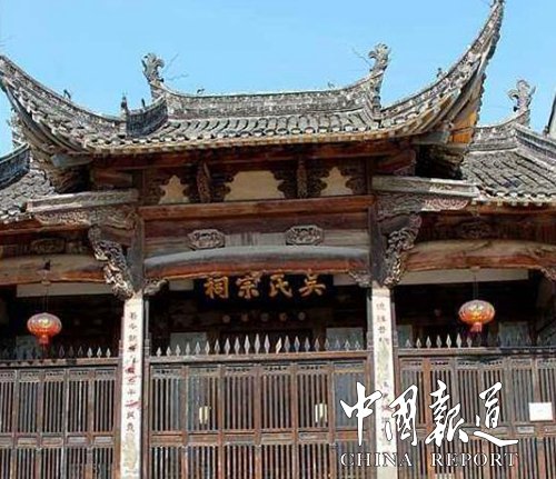 尊祖敬宗。祠堂是对祖先常怀心中崇拜的圣地,祠堂与墓茔是祭祀祖先的圣坛。在吴姓宗族中给予高度的重视,占据着重要的地位。吴氏族谱都将建祠堂列为睦族第一要务,与修族谱同等重要。