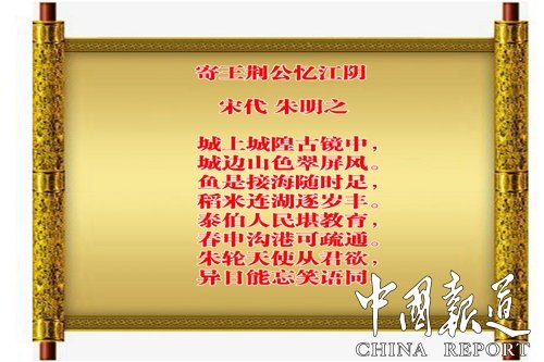 中国报道讯【编者按】历代文人咏吴国、泰伯及其后人诗文选,宋诗《寄王荆公忆江阴》。