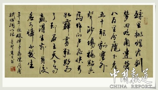 辛弃疾一生以恢复为志,以功业自许,却命运多舛、壮志难酬。但他始终没有动摇恢复中原的信念,而是把满腔激情和对国家兴亡、民族命运的关切、忧虑,全部寄寓于词作之中[3]。其词艺术风格多样,以豪放为主,风格沉雄豪迈又不乏细腻柔媚之处。其词题材广阔又善化用典故入词,抒写力图恢复国家统一的爱国热情,倾诉壮志难酬的悲愤,对当时执政者的屈辱求和颇多谴责;也有不少吟咏祖国河山的作品。现存词六百多首,有词集《稼轩长短句》等传世。