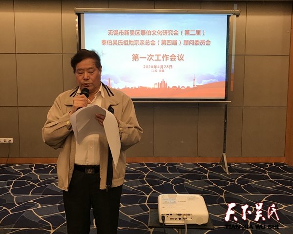 泰伯吴氏祖地宗亲总会会长吴新等领导作重要讲话,吴新会长指出泰伯吴氏祖地宗亲总会顾问委员会成员是宗亲们的宝贵财富;在联系宗亲之间的友谊发挥举足轻重的作用;泰伯总会支持顾问委员会有序开展工作。