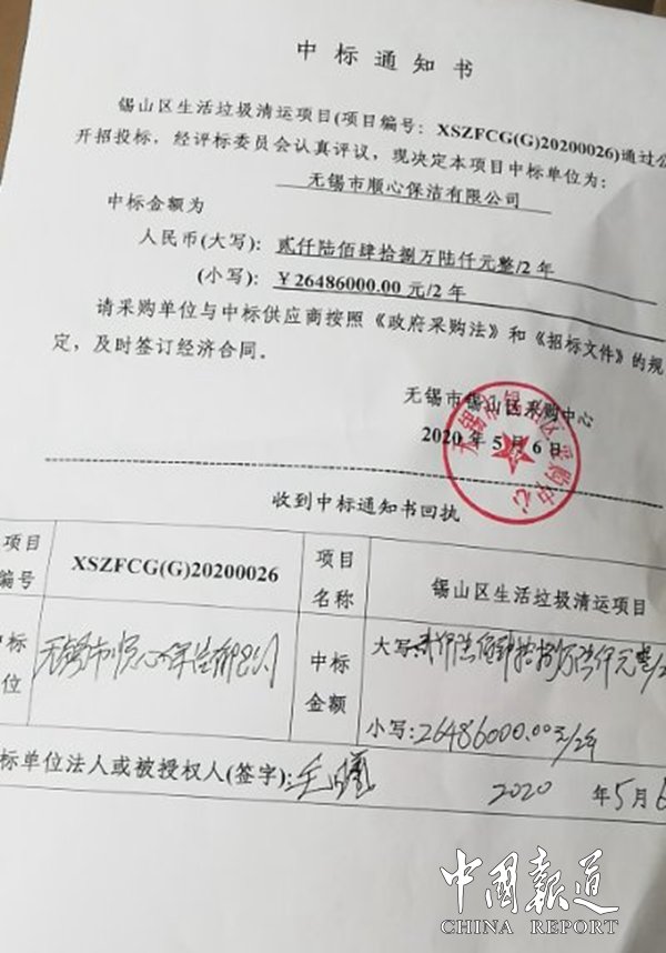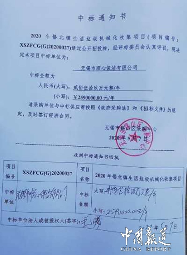 5月6日至7日,分别获得2020年锡北镇生活垃圾机械化收集项目和锡山区生活垃圾清运项目。二个项目中标金额分别是2648万6千元、259万元。