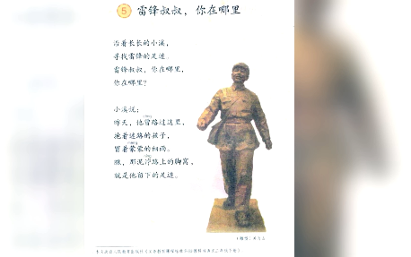 在人教版小学二年级的语文课本中,《雷锋叔叔,你在哪里》这篇课文就配上了吴为山的雕塑《雷锋》,当学习这篇课文时,孩子们可以从雷锋欢快、温暖的神情中,感受到一个有情感、有温度、有血有肉的雷锋形象。