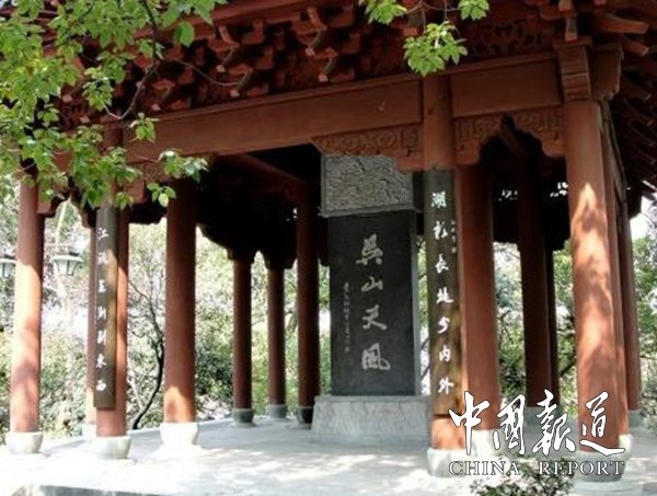 直至1984年,“吴山天风”被评为西湖新十景之一,景名取意于元代萨都剌(天锡)《偕卞敬之游吴山驼峰紫阳洞》诗:“天风吹我登驼峰,大山小山石玲珑”,以及近代秋瑾烈士《登吴山》诗:“老树扶疏夕照红,石台高耸近天风”。