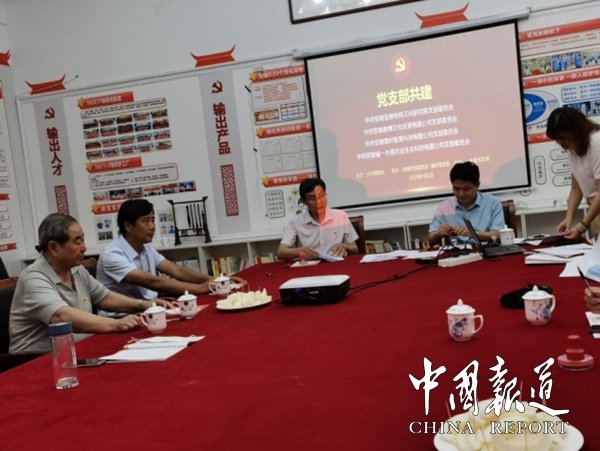 2020年7月1日下午,在中共安徽海轩教育支部会议室,在中共安徽徽博文化投资有限公司张娜书记的领誓下,九人同时右手高举,胸带党徽,面对党旗.发出了铮铮誓言.这是一场别开生面的党日活动.是四个支部的共同发声.这是一个共同欢庆的时刻,共建结对,实行红色联盟,以此为党庆生,结对共建红色联盟是新时代党建工作的一项要求.为顺应新形势的需要,中共安徽至德传统文化研究院党支部主动与有关支部磋商,确定在七一之际,进行跨业间支部交流,共过组织生活,开展结对共建,实施红色联盟的党员活动.活动在集体宣誓入党誓词中拉开序幕.接着由中共安徽一水香支部袁自明书记,宣读了共建宣言.并通过和签订了党支部共建协议.四个支部书记分别汇报了各支部的党建发展情况。