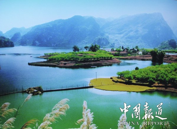 国家先后在红水河修建了十个梯级水电站犹如十颗光芒闪耀的珍珠镶在红水河这条巨大的金链子上,共同展示着广西独特而丰富的水能资源,而在长长的红水河中,最为引人注目的,是其穿过东兰县境内的长达115公里的河段。这115公里长的河段格外壮美,人称红水河“百里画廊”,那如大地震裂的沟壑弯弯曲曲,如斜着抖动的彩带飘飘扬扬,其不仅以富饶的物产养育着两岸的人民,还将自己与生俱来的迷人风光集中呈现在这里的两岸。