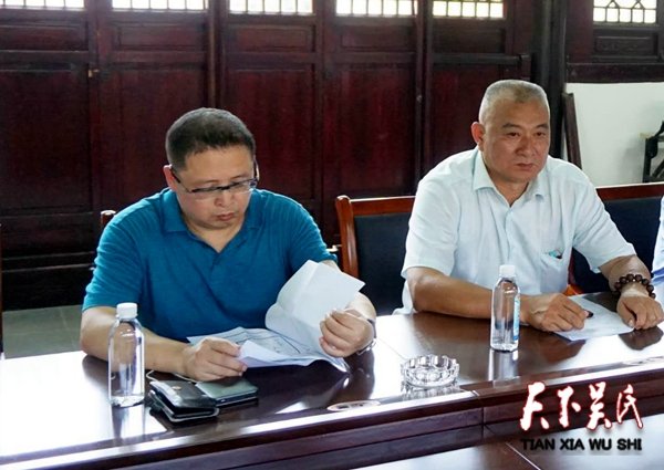 天下吴氏网讯(吴金海)宜兴市宜荆济美堂吴氏宗亲会召开关于要求保护明代礼部尚书吴俨墓座谈会于8月19日在宜兴市文物管理委员会大会议室召开。应邀出席会议的有泰伯吴氏祖地宗亲总会会长吴新、荣誉会长吴立兴、常务副会长兼秘书长吴亚南、副会长吴金海等。无锡市文管委文保处副处长章大伟,宜兴市文管委蒋苏荣主任,梅村泰伯庙文保所原所长毛剑平等文保专家应邀到会作了具体的指导。
