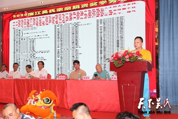 天下吴氏网讯(吴乾山报道)日前(2020年9月12日),廉江市吴文化研学会举行2020年高考奖优助学表彰大会,将宗亲们踊跃捐资募集的助学金,用于表彰在今年高考中取得优异成绩的28名吴氏学子,鼓励积极进取的学子勤奋向学。世界至德学会主席吴希民到场祝贺。他对这次吴氏学子金榜题名表示祝贺,对吴氏优秀学子捐资助学大会表示大力支持!并告诫优秀学子们,要牢固树立中国梦的远大理想和正确的世界观,人生观价值观,把学习的知识,用于回报党和人民。勉力青年学子要努力深造,报效祖国。