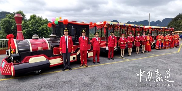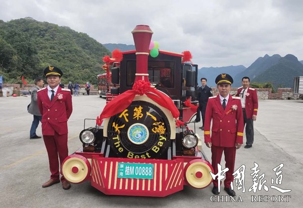中国报道讯(吴蜀丰 通讯员覃源岑福山)车笛呜鸣,车轮转动。金秋十月,老区东兰喜事连连。2020年10月18日上午,香港进源集团-广西第一湾股份有限公司在世界长寿金三角广西东兰秀美第一湾旅游名胜风景区举行旅游观光小火车首发启动仪式。