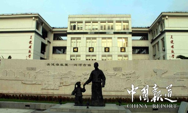 1984年10月,吴健雄第一次回到阔别40多年的故乡,参加母校明德学校恢复校名暨明德楼落成典礼,独资捐建明德学校紫薇楼。