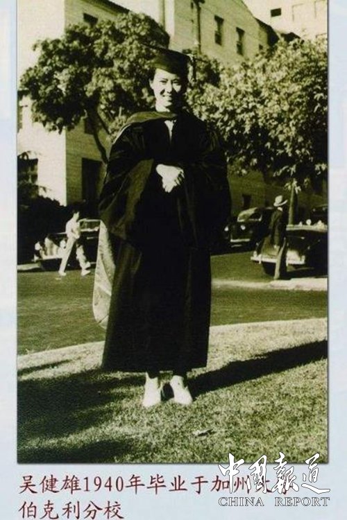 吴健雄于中华民国二十三年(1934年)从国立中央大学物理系毕业、获学士学位,于1940年从美国加州大学伯克利分校(UC Berkeley)毕业、获物理学博士学位。1952年,吴健雄任哥伦比亚大学副教授,1958年升为教授,1958当选为美国科学院院士,1975年获美国最高科学荣誉—国家科学勋章。1990年,中国科学院紫金山天文台将国际编号为2752号的小行星命名为“吴健雄星”,1994年吴健雄当选为中国科学院首批外籍院士。