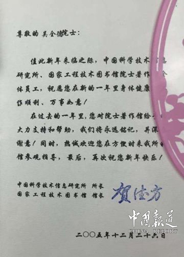 吴全德院士平易近人、为人正直、德高望重;教学上认真负责、诲人不倦;科研上周密严谨、成果卓著。他是我们的好老师,做人的好榜样。(北京大学评)