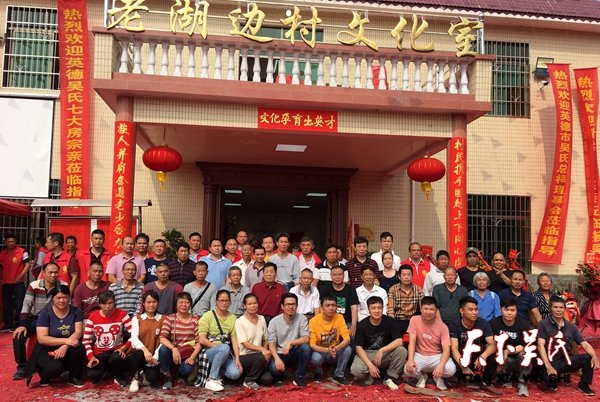 天下吴氏网(吴文彬)11月17日,今天是广东英德大站镇七大房吴氏分枝老湖边吴氏村文化室落成庆典的大好日子,锣鼓喧天狮队同庆的好日子,虽然冬天,但是晴空万里太阳高照,来自英德周边的族人及分枝到连州的吴氏一千多人见证了这个盛大宴会。