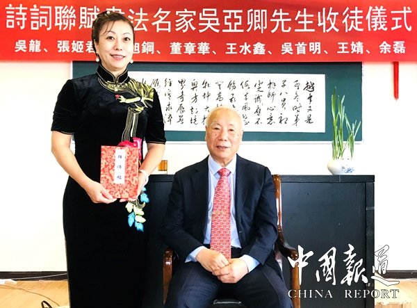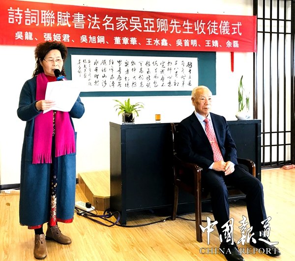 中国报道讯(吴蜀丰报道)2020年11月21日上午,中华诗词学会发起人、中国楹联书艺委委员、浙西词派传人、诗词联赋书法名家吴亚卿收徒仪式在杭州太易书院举行。此乃吴亚卿先生继去年收徒后的再次收徒。