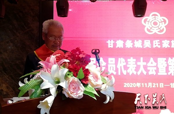 甘肃条城吴氏家族宗亲会会长吴有忠报告工作