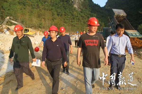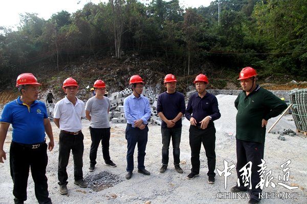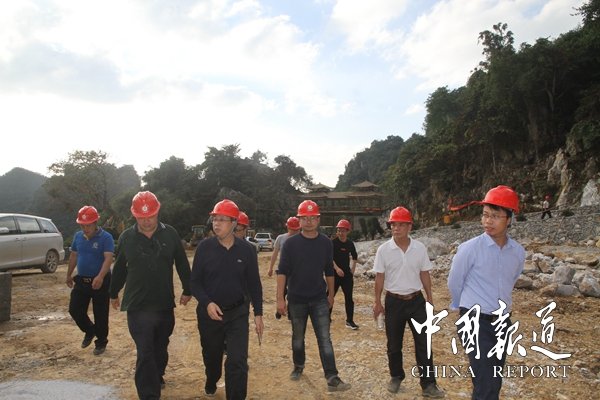中国报道讯(吴蜀丰 通讯员覃源 岑福山)日前(11月21日),中共广西东兰县委常委、宣传部长、副县长黄文江,带领县旅投公司等部门,深入广西第一湾股份公司长乐宫景区项目建设工地,检查指导复工复产和安全进度工作,现场协调解决项目存在的困难和问题,确保项目高效有序推进。香港进源集团广西第一湾股份有限公司董事长吴进枝陪同检查。