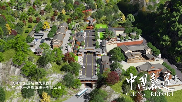 据介绍,长乐宫旅游名胜风景区项目是广西东兰县在建的重点旅游项目,该项目位于长乐镇板登村,首期总投资1.57亿元。该县通过招商引资引来了香港进源集团广西第一湾股份有限公司进行开发,项目分三期建设,第一期为景区景点及溶洞景观开发等,计划2021年元旦期间对外开放;二期建设为长乐宫温泉酒店,将启动大型休闲康养基地;三期为旅游商业特色小镇地产综合配套商业街,带动当地群众致富。