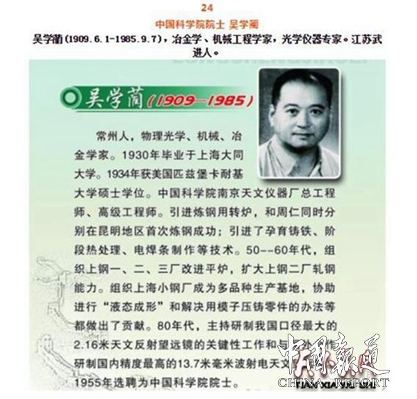 024吴学蔺(1909.6.1-1985.9.7),冶金学、机械工程学家,光学仪器专家,江苏武进(今常州)人,中国科学院院士,中国科学院南京天文仪器厂总工程师、高级工程师。