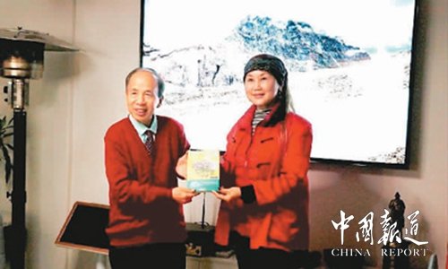 吴天玺向社区志愿者 自媒体人李鸣升赠送《风雨思归程》