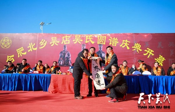 吴氏圆谱祭祖庆典由合肥北乡吴店吴氏修谱委员会主办,合肥市东岳文化传媒公司协办的颁谱活动,在吴店社区委分五个片区同时进行。最后,吴店绿草地广场舞队和合肥东岳文化传媒公司表演的丰富多彩节目,使观众忘记了寒冷,流连忘返,给整个庆典增添了祥和欢乐的节日气氛。将载入吴氏文化发展史册且亘古未有的合肥北乡吴店吴氏圆谱祭祖庆典,顺利完成了各项议程。正龙贤达宣告圆谱祭祖庆典胜利闭幕。