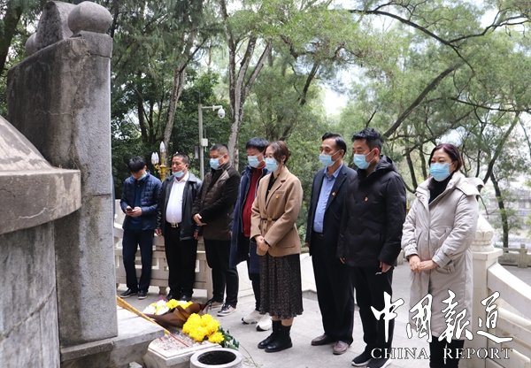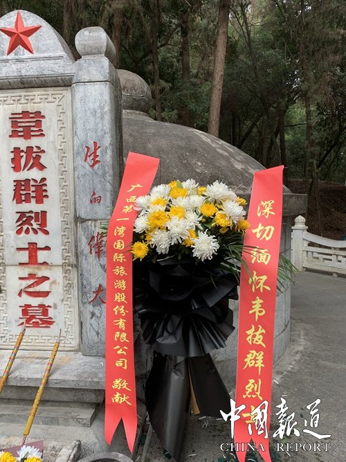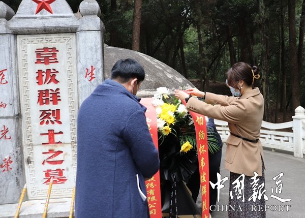 学习党课后,学员在覃源书记的带领下集体一起到拔群烈士陵园敬献花圈,重温红色教育。