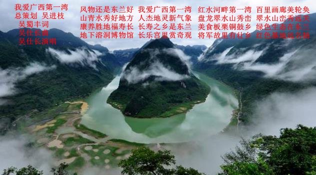 据天下吴氏网总编《我爱广西第一湾》歌词作者、资深媒体人、作家、中国报道《魅力城乡》主编吴蜀丰介绍,《我爱广西第一湾》不仅是广西第一湾国际旅游股份有限公司对外形象展示的企业之歌,主要是宣传展示人文丰富、物产丰厚的东兰旅游业。