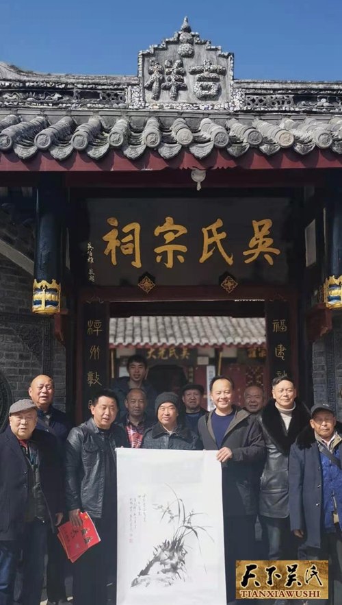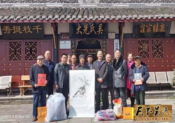 吴天智一行还给近70岁的吴金元宗长送去了节日的慰问品和慰问金以及世吴书刊等物,总会副会长,中国著名画家吴大华还专门赠送了一幅自己的作品以示勉励。