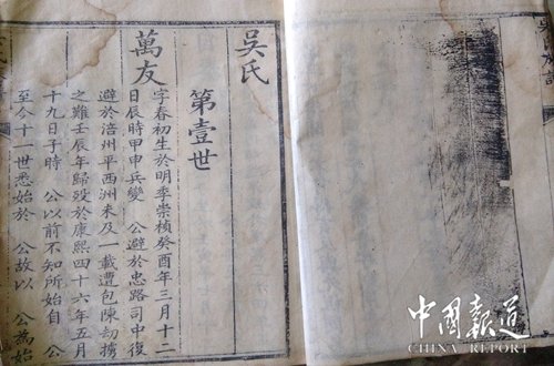 注:自该支吴氏始迁祖吴太清第11代开始。