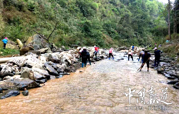 中国报道讯 (通讯员 覃源 岑福山) 连日来, 在巴马世界长寿之乡金三角(东兰、巴马、凤山)核心区的广西东兰县香河漂流旅游项目建设施工现场,一台台挖机正挥动大臂进行开挖河道、平整漂流步道;压路机正在碾压起漂点道路和游客中心基础;一旁的工人们正在紧张测量土地、砍草、和砂浆、整河道、垒石墙,呈现出一派热火朝天的劳动场面。到3月17日止, 已完成河道开挖疏通1200米 , 砍草清场1500 米, 完成储水坝开基前期工作, 和完成入漂水池基础开挖, 入漂点、终漂点、游客中心征租土地工作全部完成。
