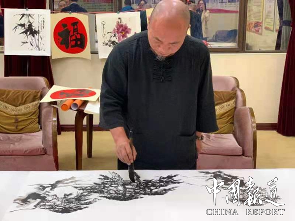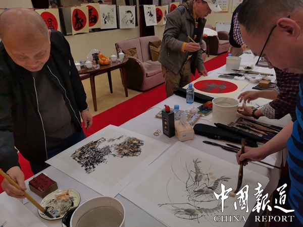 东兰县是全国著名的革命老区,风光旖旎,景色迷人,采风团一行到东兰后,先后到东兰长乐宫名胜旅游景区、坡豪湖国家湿地公园、长乐山(巴社山)康养旅游基地、红水河国家森林公园,国家4A级景区红水河第一湾、世界最大铜鼓玻璃栈道、国家4A级景区韦拔群纪念馆、广西农民运动讲习所、红七军前委旧址魁星楼、韦拔群纪念馆等考察采风,每到一处,采风团成员个个兴高采烈,兴趣勃勃,现场拨墨、相机,有的作画,有的摄影,无不赞赏东兰美丽风景,深深感受和分享到广西第一湾国际旅游股份有限公司在吴进枝董事长带领下在东兰开发建设旅游项目的成果,敬佩第一湾公司团队顽强拼博精神,仅几年时间,就以惊人的速度开发东兰多个旅游项目,初步建成了集文化,生态,康养,娱乐于一体的上档次的旅游项目,前景可观,功德无量,画家们边考察边写生,不辞劳苦,连续作战,连晚上都挥毫雅集,活动有声有色,每天活动直至到晚上11点才结束。