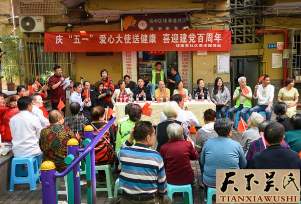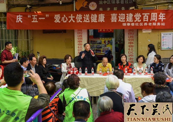 天下吴氏讯2021年4月30日,渝中区七星岗领事项社区养老服务站隆重举行,庆五一爱心大使送健康进社区,迎建党100周年庆祝活动大会。本次活动由渝中区领事巷社区主办,渝中区领事巷社区养老服务站承办。