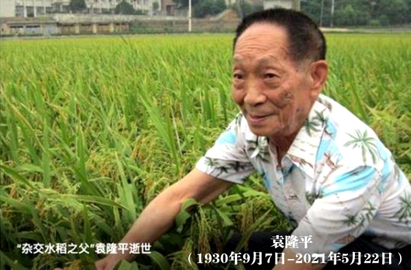 袁隆平(1930年9月7日-2021年5月22日),男,汉族,生于北京 ,无党派人士,江西省九江德安县 人。中国杂交水稻育种专家,中国研究与发展杂交水稻的开创者,被誉为“世界杂交水稻之父”。国家杂交水稻工程技术研究中心湖南杂交水稻研究中心原主任,湖南省政协原副主席  ,中国工程院院士美国国家科学院院士  ,中国发明协会会士  ,湖南农业大学名誉校长 ,第六至十二届全国政协常委。