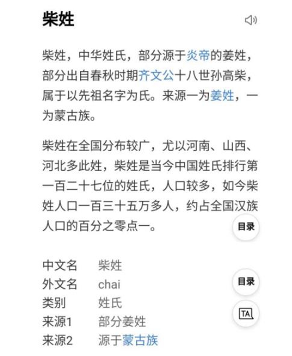 中华百家姓之柴姓总人口一百三十五万