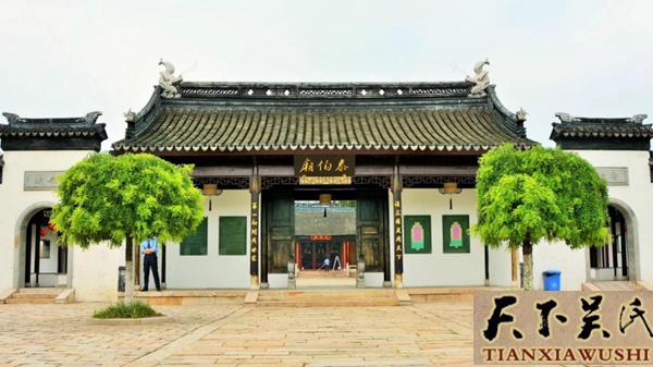 除兴修水利之外,泰伯致力于推动江南地区经济发展,促进南北文化交流,可谓“志让两家天下,功辟万古江南”。在生产上,泰伯向百姓传授黄河流域的生产经验,并结合当地实际,改“一熟为二熟”,稻麦轮作,推进种桑养蚕,饲养鸡鸭猪羊牛,使江南一带的生产逐渐发展起来。在生活上,泰伯教化乡民从“半生为食”改吃熟食,并把分散的土著居民适当集中,建立了荆村、蛮巷、梅村等村落,伯渎河畔不远处便是泰伯庙。泰伯庙,又名至德祠、让王庙,始建于东汉永兴二年(154),相传为纪念吴泰伯,由汉桓帝敕令吴郡太守糜豹在泰伯故宅所立。越过香花河桥,绕过一座刻有“至德名邦”的石牌坊,就可以看到泰伯庙的入口——棂星门,其后有至德殿、三让堂、师祖殿、关帝殿等建筑。据考,现存的香花河桥,“至德名邦”石牌坊、棂星门、至德殿均为明弘治十三年(1500)重建,而宝珠堂、三让堂、德洽堂、玉皇殿、关帝殿等十余处殿堂为清同治年间重建。自1983年起,泰伯庙开始全面整修,修复古建筑二十余处,并请中国工艺美术大师柳家奎先生塑泰伯座像,以及吴王世系、伍子胥、孙武等人物像30余尊,或坐或立,神态各异,栩栩如生。“古往今来歌至德,人间天上唱高义”,“至德无称,八百开基绵世泽;天伦信美,千年遗范在人间”,在至德殿内挂有很多类似的抱柱楹联,歌颂着泰伯的丰功伟绩。