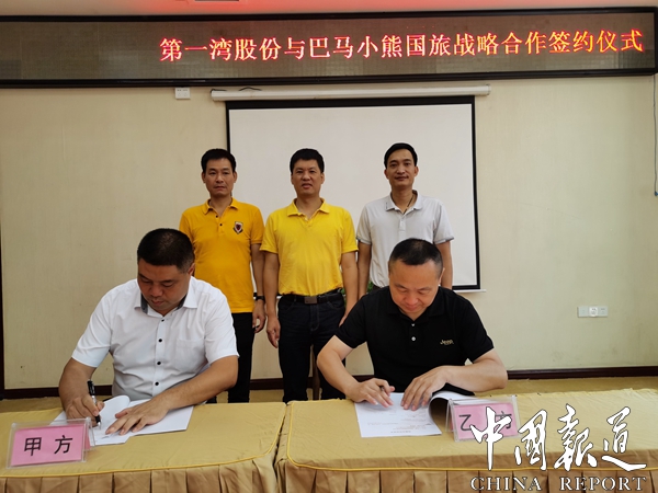 参加战略合作签约仪式有广西第一湾国际旅游股份有限公司常务副总经理南建陆,巴马小熊国际旅行社有限公司总经理黄秋夏,以及双方有关人员。