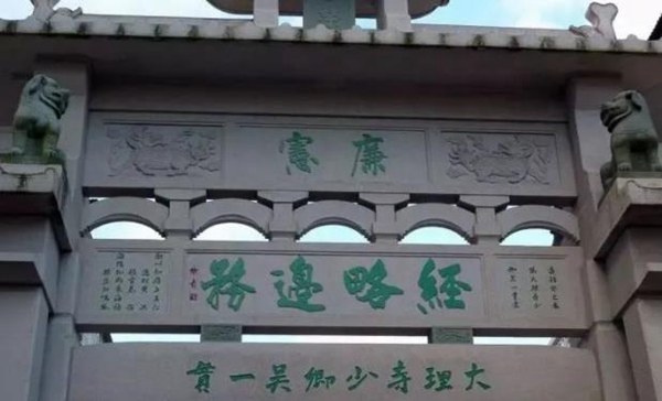 潮州市区牌坊街义井巷头所立“大理少卿坊”吴一贯由于有功于民,明史及方志皆言“士民为其立忠节祠祀焉”,乾隆《潮州府志·坊表》:“大理少卿坊,在大街。为大理少卿吴一贯建。”“大理少卿”坊原在潮州市太平路灶巷口。坊字南镌“经略边务”。“大理少卿”眉枋镌“绣衣”;“经略边务”眉枋镌“廉宪”,旁镌“莆田周宣书”。大理寺为明代中央司法复审机关,其司法地位,甚至高于刑部。少卿为副职。“绣衣”,官名“绣衣直指”的省称。汉武帝末年各地农民起义,特派官员衣绣衣,杖斧持节,发兵镇压,并有权诛杀镇压起义不力的地方官员,由侍御史担任,亦称绣衣御史。后为御史之尊称。“经略”,经营治理;筹划,谋划。“廉宪”,廉访、宪台的省称。廉访,按察使的尊称,因元代之肃政廉访使与按察使之职掌相似。宪台,御史台的别称。坊字不仅将吴氏重要官职标明,南北八个坊字更是点出他宦途的辉煌时期。坊为四柱三门结构,明间二正柱之上置次间屋面,左右屋檐前置石狮一对,额坊之上为石刻月梁,上枋承托石盖屋面,屋脊正中间为二短柱和一竖直石肚,其上又是一小石作屋面,正楼下正中“恩荣”牌一块。坊建于“嘉靖癸巳”,即1533年(明嘉靖十二年)。拆卸于建国后1950年。已按原貌重建于太平路义井巷口南侧。坊额左镌“潮州知府丘其仁、通判黄洪、推官秦僎,海阳知县朱海桢、县丞何鸣凤。嘉靖癸巳春立”。下枋镌“明大理少卿吴一贯”。吴一贯求拜石吴一贯与饶平县大澳村郑氏,还有一段恩义渊源,并留下一椿人们常津津乐道的佳话。原来,吴一贯幼时家境贫寒,只靠父亲经常到饶平沿海挑盐贩卖为生。其父一次外出挑盐,逾月不归,年关在即,家庭生活难度,其母焦虑万分,不得不携一贯,行乞至饶平沿海边一带乡村寻觅。一天中午,母子俩来到澳头(今大澳村)郑氏祠堂檐下歇息,遇澳头长者郑瑶,该长者向来乐善好施,见贫困者常有资助。