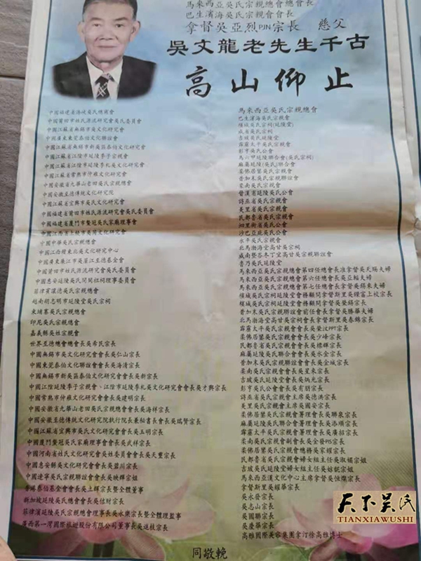 天下吴氏沉重悼念吴文龙先生跨鹤登仙