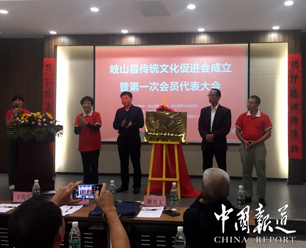 中国报道讯(通讯员郑鼎文)秋雨绵绵情绵绵,优秀文化代代传。9月5日上午,岐山周文化研究会一行10人,应邀参加了岐山县传统文化促进会成立暨第一届会员代表大会。在岐山天缘食品有限公司多功能厅召开的这次会议上,首先唱国歌,行周礼,拜圣贤,接着在老师引领下由可爱的小朋友们进行传统文化经典诵读。声音清纯,表情生动。中共岐山县委宣传部副部长吴宏昌致辞,从践行社会主义核心价值观的高度指出了传承、弘扬优秀传统文化的重大现实意义。吴宏昌、郑鼎文、王玉芳、李勋科为传统文化促进会揭牌。常务副会长李勋科宣读班子组成人员文件。