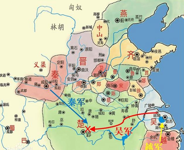 公子光,终于成了吴王,从此人称“吴王阖闾”。这下,阖闾有了广阔的舞台,来施展他的军事、政治才能。同时,又有伍子胥、孙武等天才辅佐,经大力整顿,国力大增,使吴国一跃跻身春秋末期强国之列。有了资本和实力,公子光开始跟楚国,算总账了。伍子胥,也终于熬出头了,也多亏他独具慧眼。当初,看好了公子光这支潜力股。至于“复仇狂人”伍子胥的故事,大家都知道,在这就不罗嗦了!公元前506年,阖闾率师会蔡、唐之师伐楚。柏举之战,五战五捷,大败楚军,仅10天就攻入楚国都城郢。这次,阖闾创造了奇迹,堪称春秋时期最牛的一次侵略。第二年,越王允常率师进攻吴国,阖闾亲自出征,大败越军。公元前504年,吴师再次伐楚,迫使楚国迁都以避祸。