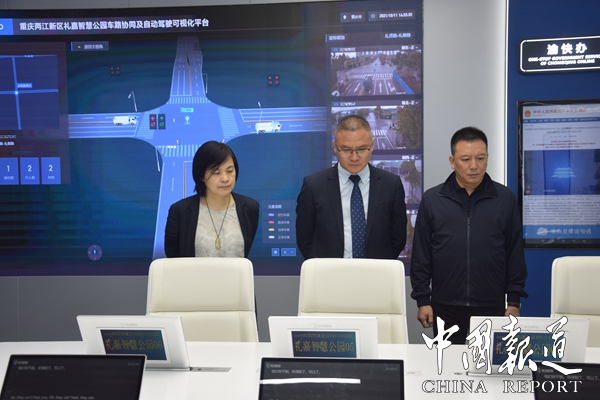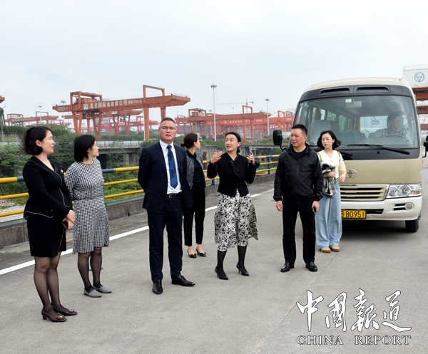 重庆两江新区自贸办(中新办)现服局局长,自贸办(中新办)主任郑航,自贸办(中新办)副主任任渊,自贸办(中新办)招商部部长万静,自贸办(中新办)招商部工作人员孙诗琪。