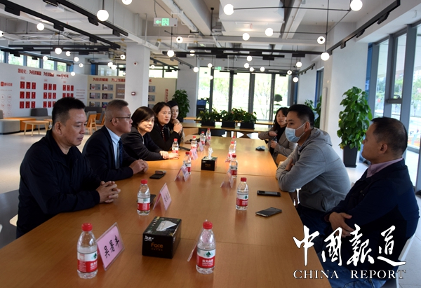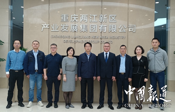 两江新区保税港集团副总经理黄曲,产业发展三部部长杨航宇,产业发展三部副部长刘勇,产业发展三部招商主管杨冈,产业发展三部招商人员秦逸琳。