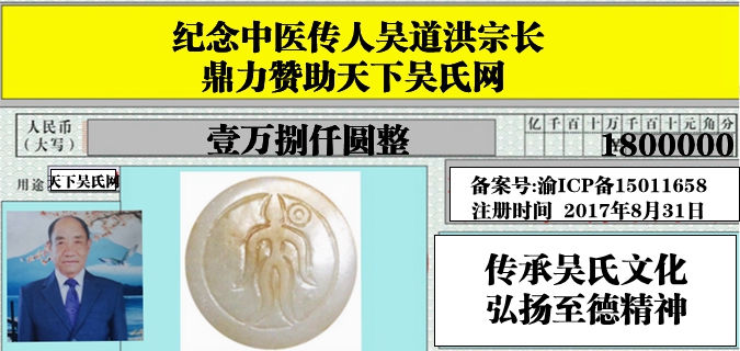 纪念中医传人吴道洪博士鼎力赞助天下吴氏网
