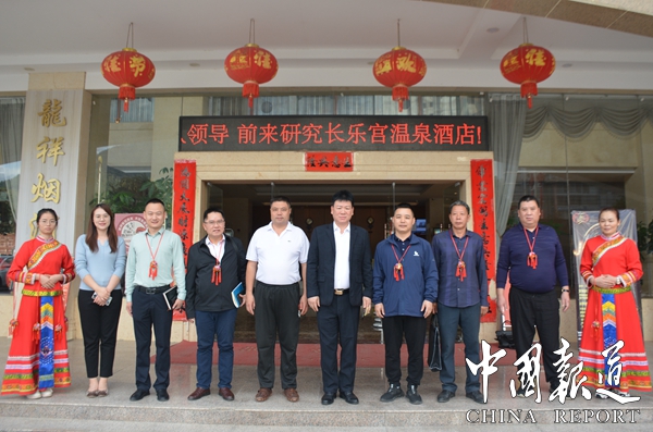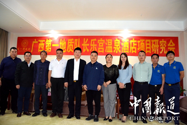 中国报道讯 (通讯员覃源 岑福山 麦国新)10月20日,广西壮族自治区第一地质队一行5人,在党委书记简水荣带领下来到到广西第一湾国际旅游股份公司进行长乐宫名胜旅游景区温泉酒店自然资源业务交流,并达成合作初步协议。