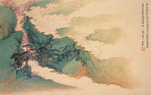 谈到娄东画派,指的是对清初四位姓王的著名画家——王时敏、王鉴、王原祁、王翚的合称,王时敏、王鉴是“四王”中的前辈,可以说是“娄东画派”的先驱,但是在他们那个时期娄东画派尚未形成。严格地说,“四王”不是一个画派的名称。画派的出现是王原祁成才、成名和成熟的产物。与其同时,以王翚为首领形成了“虞山画派”。这两个画派的得名也是因画派领袖的家乡地名而定,太仓地处娄江东部;而常熟有一座虞山,名闻遐迩。不论是“四王”还是娄东画派、虞山画派,他们的画学思想和艺术风格是基本一致的,其核心乃是董其昌所倡导的南宗山水画论。娄东画派和虞山画派虽同师同宗,但它们之间是有差别的,对于这一点,肖平先生在《娄东画派》一书中以寥寥数语讲得很透彻:“王时敏、王鉴虽同师承南宗山水画倡导者,在王鉴身上,融合了北派的一些优点,传给了他的学生王翚,造就了虞山画派的领袖。而在王时敏身上,进一步纯化了南宗山水画思想,以黄公望艺术为规范,传给他孙子王原祁,形成了娄东画派的领袖。娄东、虞山,似‘双峰云栈’,影响天下画人。”