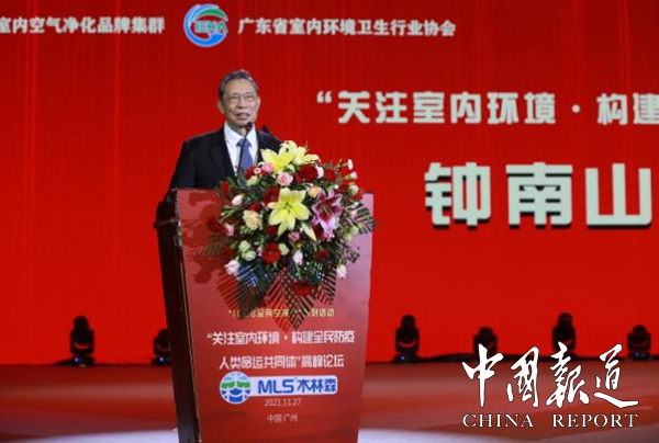 钟南山院士在高峰论坛上作主旨演讲,发表题为《关注室内环境,构建全民防疫人类命运共同体》的讲话。