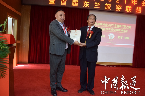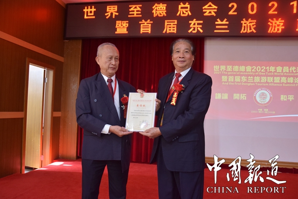 论坛会上,世界至德总会授予广西第一湾国际旅游股份公司为旅游联盟理事单位牌匾,同时还给联合国世界数字经济织织数字经济与文化专家、《中华商道》作者李伯淳,联合国防治荒漠化公约秘书科学委员会、清华大学∪NccD可再生能源促进生态修复和可持续生计项目部专家陈安平,广西第一湾国际旅游股份公司总经理南建陆,北京中医肿瘤医院杨长俊,中国福顺源养老集团董事长吴中华,浙江金吴志成等代表颁发任命书。特别聃请广西第一湾国际旅游股份公司股东会主席麦钱江为世界至德总会副主席。