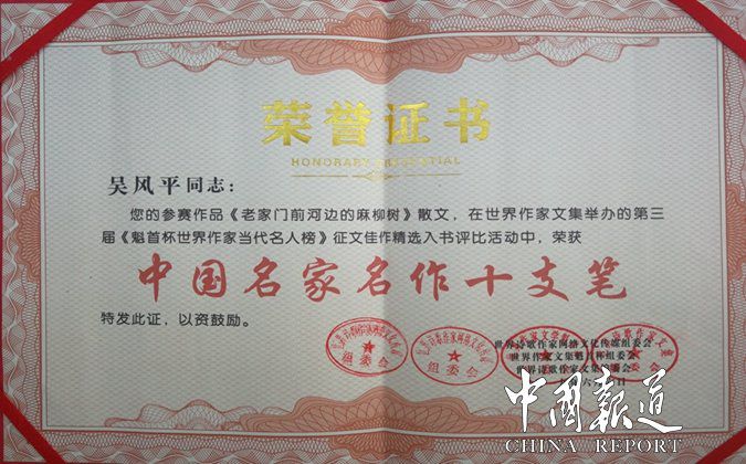 吴风平教授作为医者,他潜心钻研中医临床研究,仁心仁术,医德高尚,视患者如亲人,长期为患者减免医疗费多达数百万;作为民盟盟员,他积极参加民盟中央组织的扶贫支助贫困家庭孩子上学,为山区孩子送温暖。他栉风沐雨,大爱无垠,其仁善之心肠,浩荡之胸怀,医技医术被省内外及国家级平面媒体、电视台、新媒体、自媒体进行了专访报道,有力的推动了让中医药文化自信,疗效自信,让中医药在人类健康命运共同体的征途上更加自信和更加有力量。吴风平教授实乃为吴氏家族之骄傲,更为吴氏后辈学习之典范!