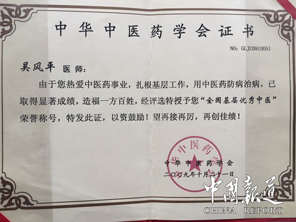 吴风平还有着深厚的家国情怀,非典时期积极献方得到了国家中医药管理局的表彰。新冠肺炎疫情期间第一时间向社会贡献预防和治疗冠状肺炎的组方,并积极配合当地政府身处一线开展防疫抗疫工作,连续四个星期熬制预防冠状肺炎中药液至凌晨四点,义务免费给广大群众和防疫工作人员送药达6000余人次,赠送口罩达5800余个,价值达17万元,得到主管部门与政府的肯定,被授予“新冠肺炎防控先进工作者”荣誉称号,也是所属区域内200余家民营医疗机构唯一荣获此殊荣的单位和个人。